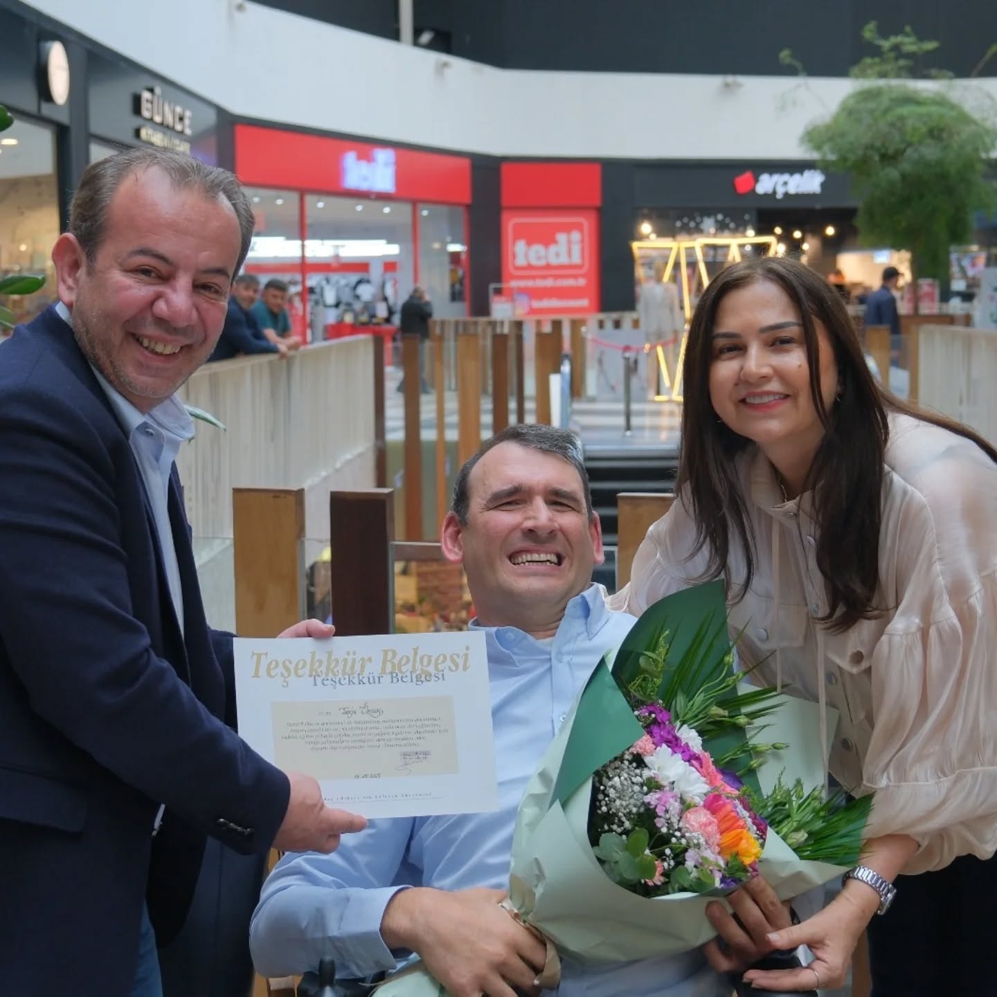 Her etkinlikte görevli ekibe çiçek sunma geleneğini bu kez anlamlı bir katkıya dönüştüren yazar Onur Ustaoğlu, bu defa çiçek bütçesini Çağdaş Yaşamı Destekleme Derneği’ne (ÇYDD) bağışladı. Yapılan bağış, bir kız öğrencinin 1 aylık burs giderine denk geldi. Bu sosyal sorumluluk örneği, etkinliğe farklı bir değer kattı. Ayrıca etkinlikte emek veren görevlilere, ÇYDD yetkilileri tarafından teşekkür belgeleri sunuldu. Bu anlar, salonda duygusal ve anlamlı bir atmosfer oluşturdu.