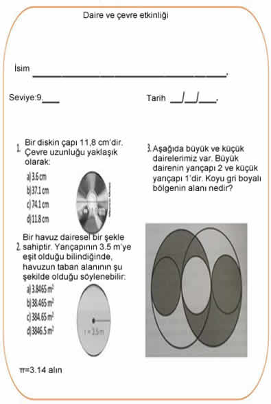 Burak öğretmen: “Ancak 1. ve 2. sorular Ela öğretmenin öğrencilerinin çemberin çevresi ve alanını hesaplamak için yarıçapı ve çapı nasıl kullanacaklarını bilip bilmediklerini değerlendirmesine yönelik öğrenme hedefi ile uyumluydu.